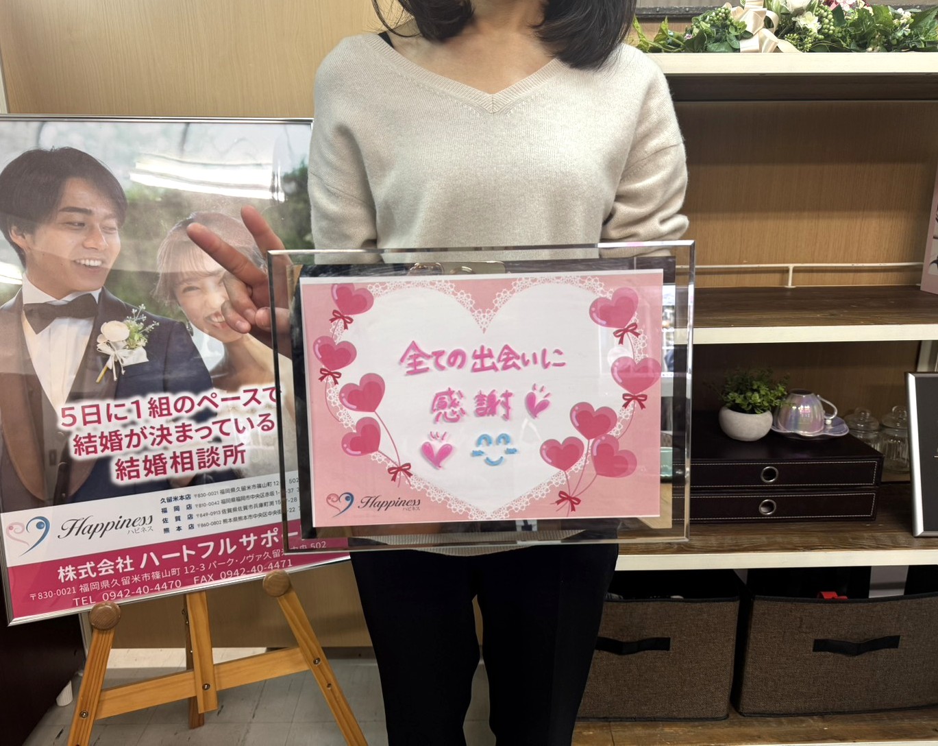 またまた嬉しいハピネスのご報告で~す💕 今は幸せ過ぎて夢のような気分です✨ 女性会員さまが飛びっきりの笑顔でご成婚手続きにご来店されました(^O^)/